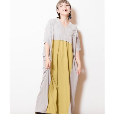 ゆったりとしたシルエットながら、ドレープや配色でエレガントな女性らしさを演出。