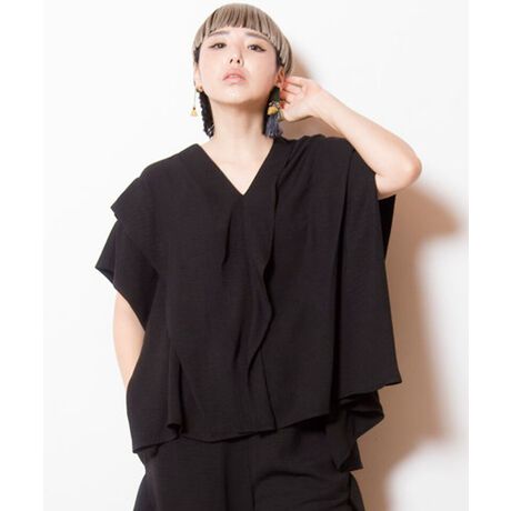 比翼の様にタックを重ね、緩いラッフルフリルに仕立てたハンサムな甘さが魅力。