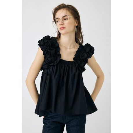 【SHOULDER FRILLS TOP / ショルダーフリルトップス】■ポイントアームホールにたっぷりとボリューム感のあるフリルをあしらった、スリーブレスブラウスです。■ディテール肩のフリル、フワッと広がるシルエット、大胆に開いたネック周り、1枚着るだけで華やかで女性らしい印象に。身幅がゴム仕様になっているため、これからの暑い季節にリラックスしてご着用いただけるアイテムです。■スタイリングトップス自体が華やかなデザインのため、デニムやスラックスなどシンプルなボトムスと合わせるだけでも十分に映えます。スカートにウエストベルトを合わせてアレンジするなど、幅広いスタイリングをお楽しみいただけるアイテムです。夏のシーズンが過ぎた頃には、ハイネックのインナーなどと組み合わせて、シーズンレスに楽しんでいただきたい1着です。■生地透け感:なし裏地:なし伸縮性:なし光沢感:なし■商品のお気に入り登録お気に入りアイテムの再入荷・在庫1点などの通知を受け取ることができます。■ブランドのお気に入り登録新作アイテムの入荷や人気アイテムの再入荷、おすすめトピックスなど、いち早くブランドの情報を受け取ることができます。[注意事項]※画像の商品はサンプルです。実際の商品と仕様、加工が若干異なる場合があります。※画像の商品は光の照射や角度、お使いのモニター環境により、実物と色味が異なる場合がございます。※着用、お取り扱いの際は、アテンションタグをご確認ください。