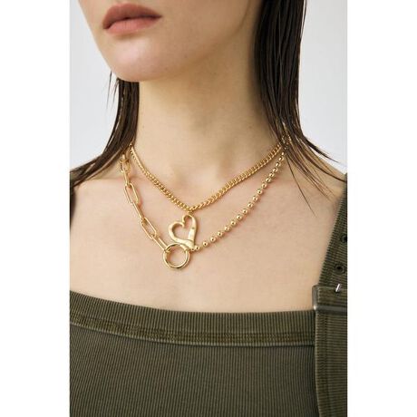 【ASYMMETRY CHAIN NECKLACE / アシンメトリーチェーンネックレス】■ポイントハートモチーフとアシンメトリーなチェーンがポイントの二連ネックレスです。■ディテールオリジナルのハート型とシンプルな丸のディテールを組み合わせたデザインで1つで重ね付けを叶えます。■スタイリングTシャツやタンクなどのシンプルカットソー、シャツなどこれからの季節のファッションにアクセントを加えてくれるアイテムです。ATT K-800お取り扱い上のご注意本品はデザイン性を重視した繊細なアクセサリーです・非常に引っ掛かりやすく、取れやすいのでご注意下さい。極度な力が加わると破損する事があります。・装飾部分は形や色に個体差があります。・皮膚に痒みや刺激を感じた際は使用をお止め下さい。・摩擦(特に汗や雨等で濡れた状態)により色落ちする可能性がありますのでご注意下さい。・金属アクセサリーの場合、消毒液に触れたり、皮脂および汚れの蓄積により、変色や変質する場合がございます。定期的にふき取りのメンテナンスをお願いします。消毒液が製品に直接かかる事が無いようご注意下さい。■商品のお気に入り登録お気に入りアイテムの再入荷・在庫1点などの通知を受け取ることができます。■ブランドのお気に入り登録新作アイテムの入荷や人気アイテムの再入荷、おすすめトピックスなど、いち早くブランドの情報を受け取ることができます。[注意事項]※画像の商品はサンプルです。実際の商品と仕様、加工が若干異なる場合があります。※画像の商品は光の照射や角度、お使いのモニター環境により、実物と色味が異なる場合がございます。※着用、お取り扱いの際は、アテンションタグをご確認ください。