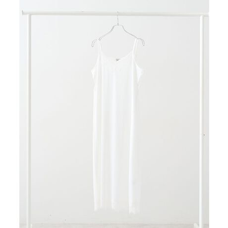 レイヤードスタイルに重宝するインナーキャミソールワンピース。光沢のあるとろみテクスチャーにレースデザインがより女性らしさをプラスします。肌に触れるとひんやり感じる接触冷感素材で夏シーズンにも最適。シャツや羽織りのインナーワンピースや、ペチコートとしても活躍する汎用性の高いアイテムです。透け感[ややあり]