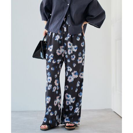 夏の装いに映える、カスリ柄プリントのイージーパンツ。