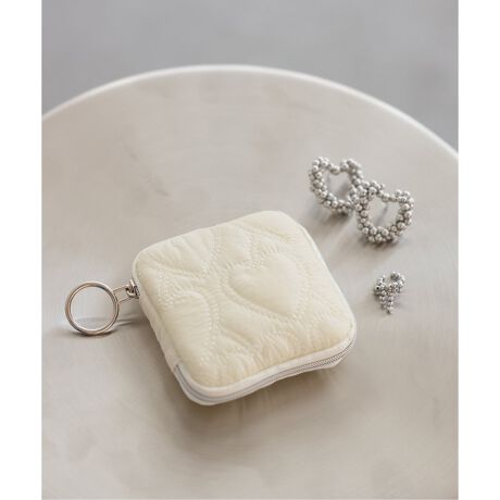 ハート型のキルティング素材を使ったアクセサリーポーチ。