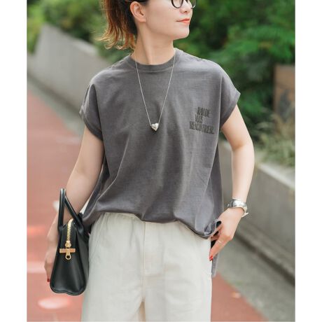 身幅にゆとりはありつつも、袖丈を肩にかかるくらいのフレンチスリーブですっきりと見えるアイテムです。