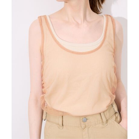 チュール素材のタンクトップとカップ付きキャミソールの便利なセットアイテム。
