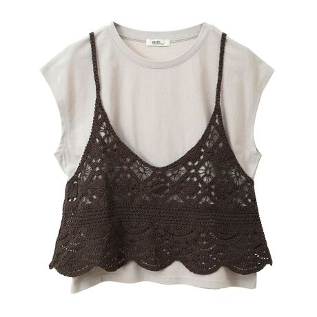 SET2点 クロシェキャミソール+ノースリーブプルオーバー
