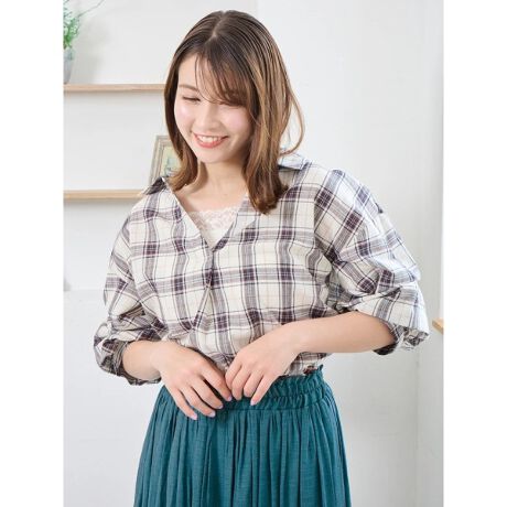 スキッパーネックからインナーをのぞかせてアクセントにするのもおすすめです。