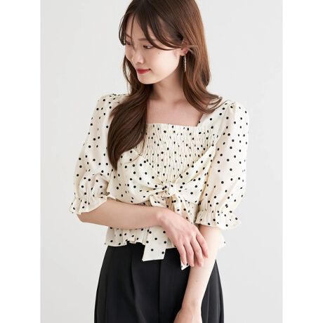 ドットプリント×リボンデザインがSWEETなアクセントをプラスするブラウス。