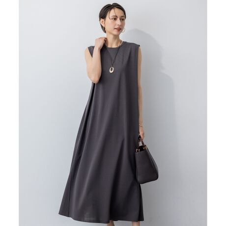 クルーネックでシンプルにこなしたスリーブレスワンピース。肩口に入れた深めのタックディテールで腕のラインが程よく覆われ細見えするデザイン。またスカート部分のサイドにマチを入れることで、立体的に広がるフレアシルエットながら、すっきりとした印象のロング丈に仕上げています。カラーは、爽やかな青味のあるモスグリーン(#053)、暑い時期にもカジュアルすぎず適度な品を感じるブラウン(#030)、洗練された印象の深みのあるグレー(#004)、シックな雰囲気が漂うブラック(#005)の2色展開です。