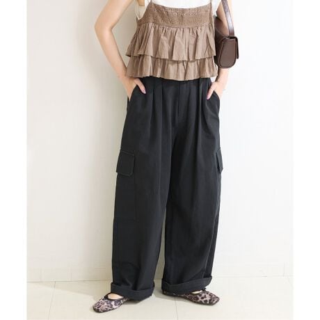 ウォッシャブル / ソフモアバックサテンバギーカーゴパンツ