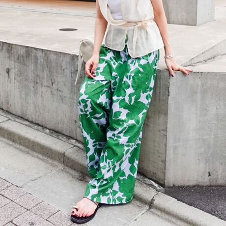 ・夏らしい大柄のフラワープリントが、単調になりがちな季節のスタイリングに