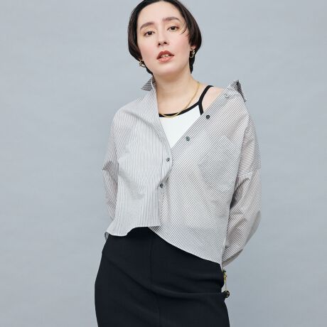 ・配色になった華奢なバインダーがポイントで、シアーシャツやジャケットのインナーにおすすめ
