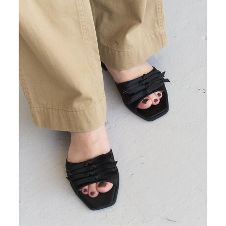 リボンが幾重にも重なったキャッチーなスライダーサンダル。