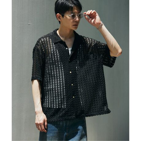 総柄のデザインが魅力のショートスリーブシャツ。独特のレース柄が織り成すアブストラクトなパターンが、シンプルなシャツに個性と華やかさをプラスします。