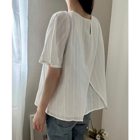 バックスリットコットンレースブラウス