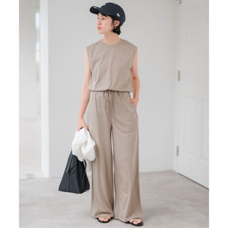 ポリエステルを裏面にプレーティングした上品な天竺素材を使用した、カットソーオールインワン。