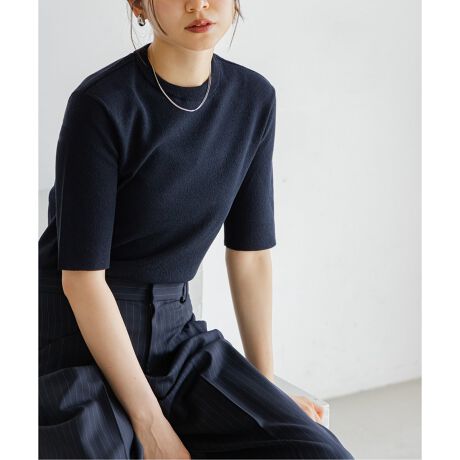 クルーネックで肩から袖にかけては身体に沿いすっきりとしたラインを描き、シンプルさの中にも大人が着やすいベーシックトップスを意識。