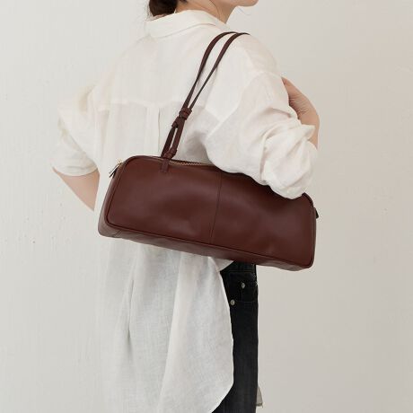 横長フォルムが目を引く、モードな雰囲気漂うボストンバッグ。