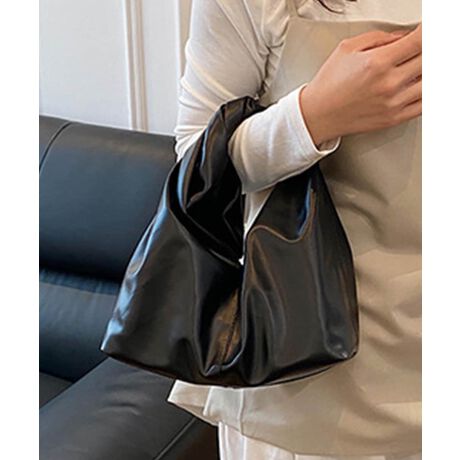 自然なギャザーデザインがアクセントになった、柔らかな雰囲気のハンドバッグ。立体感のあるシルエットが上品で女性らしく、持つだけでコーディネートを引き締めてくれます。