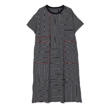 切替をたくさん入れて、ボーダーとストライプをミックスしたワンピースを作りました。