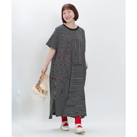 切替をたくさん入れて、ボーダーとストライプをミックスしたワンピースを作りました。