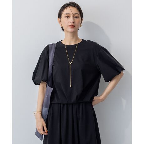 シルエットを膨らませるテクニックタックを入れたデザイントップス。袖は薄手のカットソーを裏打ちして立体的なバルーンスリーブに、裾はタックをとって立体的なシルエットに仕上げました。ボトムのウエストに裾をインしないで決まるデザインで、ワイドパンツや同素材のIラインスカートなど、さまざまなボトムと好相性なアイテムです。カラーはニュアンス感のあるグレー(#004)、ベーシックなブラック(#005)、抜け感をプラスするブラウン(#030)の3色展開です。