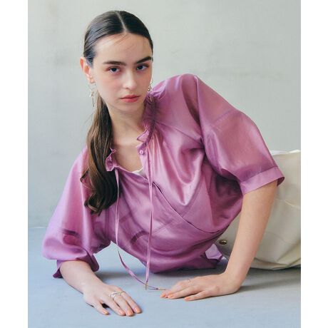 人気完売のため追加生産!程よいふくらみのバルーンスリーブが華やかなシアーシャツ。