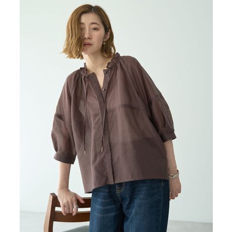 人気完売のため追加生産!程よいふくらみのバルーンスリーブが華やかなシアーシャツ。