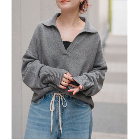 クラシックな長袖ポロシャツデザインをベースに、程よくゆとりのあるシルエットとスキッパー開きの衿元が抜け感を演出。