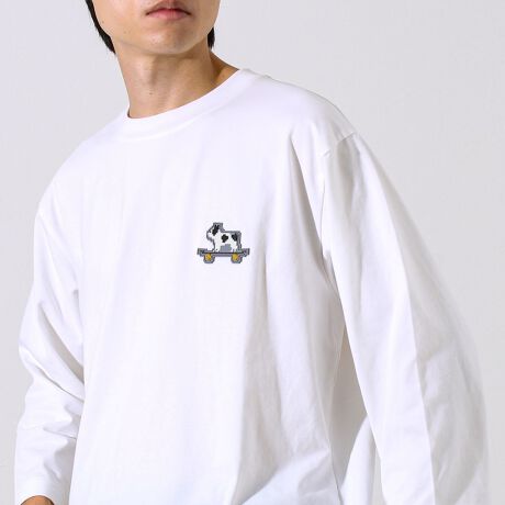 #デジブルTEE #秋Tコーデ #スケートドッグ #ドット刺繍 #七分袖Tシャツ #GLOSTER #レイヤードスタイル #ユニセックスカジュアル