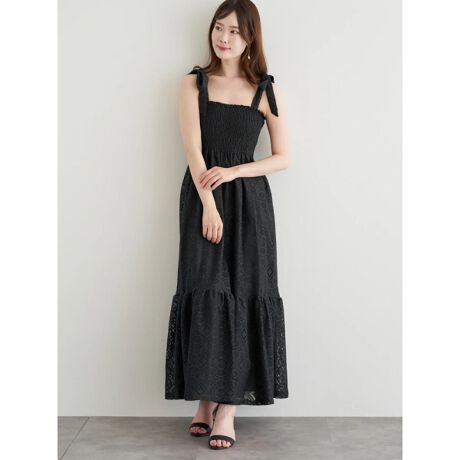 華やかなショルダーリボンとレースが大人フェミニンな印象のワンピース。