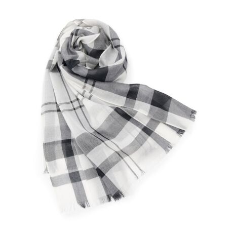 やや張りのあるシャリ感でさらりとした肌触りのラメ入りチェックストール。