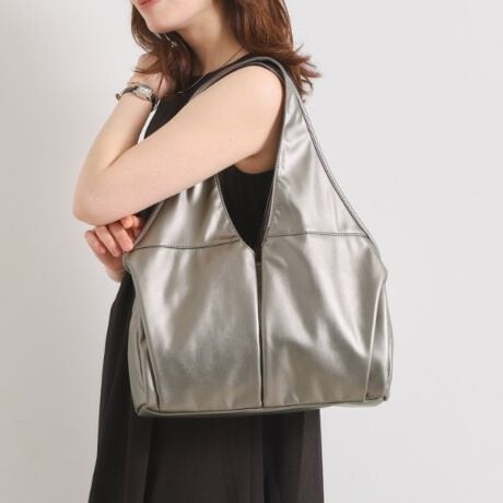 柔らかソフト合皮で肩掛けしやすいセンタータックトート。