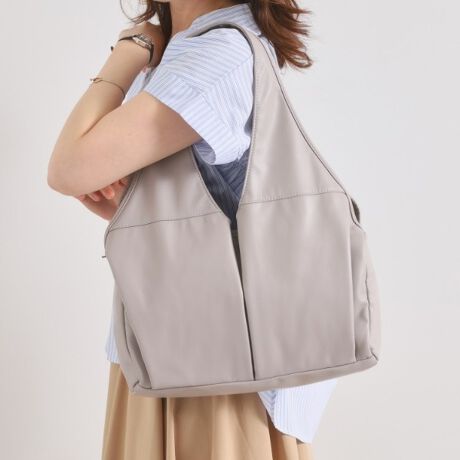 柔らかソフト合皮で肩掛けしやすいセンタータックトート。