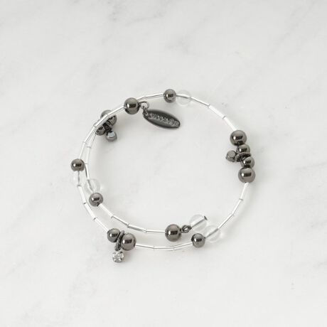 シンプルながらも華のあるデザインのメタルビーズとクリアビーズを使用したブレスレットは、一本で重ね付けしているようなスタイリッシュな見た目が魅力。