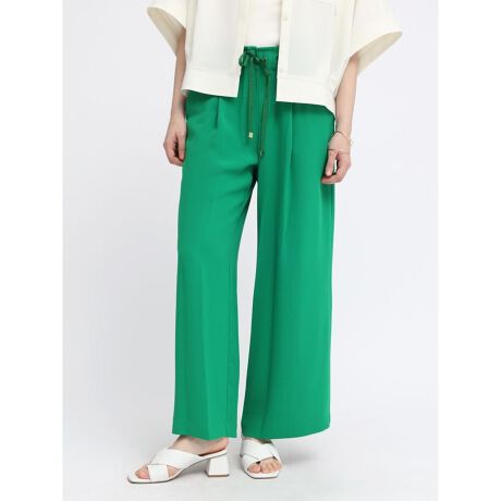 リラクシーな着心地かつシンプルなノーマルデザインでどんなコーデにも合わせやすいワイドパンツ。センターに入るインタックに、揺れるドレープ性が余白を埋め下半身を綺麗に魅せてくれる逸品。細かな金具はゴールドに仕上げ、上品さや大人っぽさを醸し出します。トップスを選ばず雰囲気に寄り添うナチュラルさや総ゴムタイプが嬉しいポイントです。