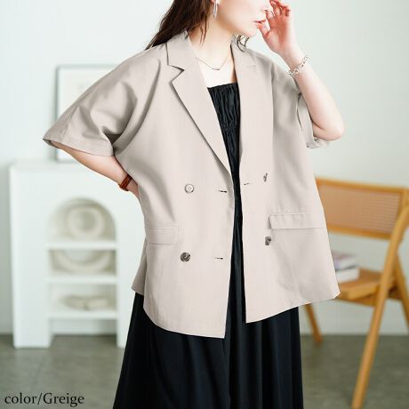 トレンドライクなオーバーサイズのジャケットは、ゆったりとしたシルエットがラフさを演出しながら、キリっとした印象のテーラードジャケットで綺麗めに纏まります。ダブルデザインでフォーマルな印象が漂い、オンにもオフにも馴染むこなれるアイテム。ゆったりサイズだから、羽織るだけで上半身をしっかり体型カバー。袖の切り替えをフラットにし、なだらかな肩のラインを描くことで肩幅もカバーしてくれます。後ろ側の裾にはスリット入りだから腰回りの窮屈感もなく、ヒップラインもカバー。