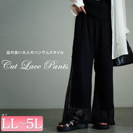 【大きいサイズ】 カットレースフレアパンツ 大きいサイズ レディース パンツ ズボン ロング フレア