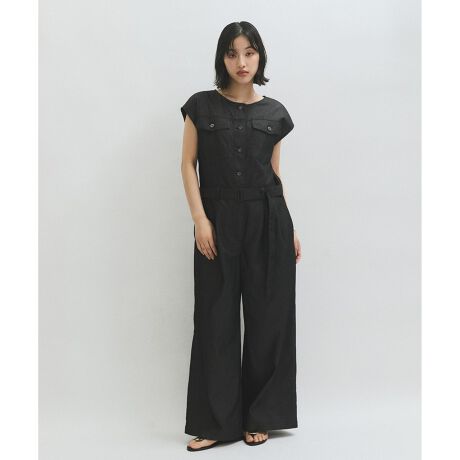 デニムジャケットのディテールを取り入れたシックに決まるオールインワン。