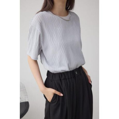 ■ソリッドテクスチャーカットトップス■ポイント表面感のある生地が魅力のソリッドテクスチャーカットトップス。■ディティール縦ラインを意識した柄が、さりげなくスタイルアップを叶えてくれる一枚。ほどよく伸縮性のある素材で、暑い時期にもストレスフリーな着心地です。ゆとりを持たせたシルエットで、体のラインを拾わずリラックスして着られるのも嬉しいポイント。気になる二の腕も自然にカバーしてくれる長めの袖丈も嬉しいポイント。■スタイリングハイウエストデニムやボリュームのあるボトムとあわせてカジュアルに着こなしていただくのがおすすめです。■生地波のような柄を編立で表現したジャガード生地です。落ち感としなやかさが特性です。柄の見え方には個体差があります。透け感:WHTはややあり裏 地:なし伸縮性:あり光沢感:なし[注意事項]※画像の商品はサンプルです。実際の商品と仕様、加工が若干異なる場合があります。※画像の商品は光の照射や角度、お使いのモニター環境により、実物と色味が異なる場合がございます。※着用、お取り扱いの際は、アテンションタグをご確認ください。
