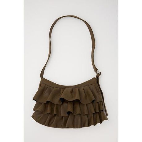 ■POINT:フェイクレザーを使用したバッグ。フリルデザインなので、甘くなりすぎないのがポイント。■DETAIL:たっぷりと容量が入るサイズ感で、デイリー使いもしやすいアイテムです。■STYLING:ショルダーの調節が可能なので、肩掛けとしても使用できます。