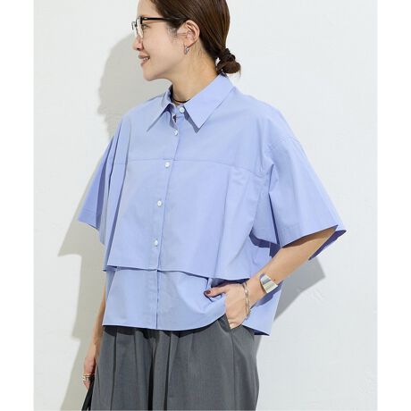身頃がレイヤードされたようなデザインのハーフスリーブデザインシャツ。