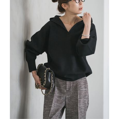 ニット独特のハリのある生地感のため、フーディ部分は立体的なシルエットを作り出してくれます。
