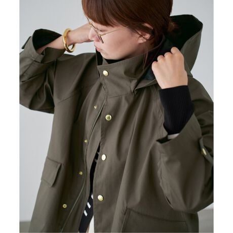 風が通りにくく、綺麗目なフォルムが特徴のフーデッドブルゾン。