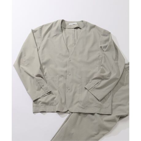 洗えてキチンと感のあるアイテムが好評頂いている、relumeの『TECHシリーズ』からその理念を凝縮し、デザイン性と機能性を融合させたのが、このノーカラージャケットです。
