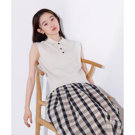 華やかで繊細なラメ糸を使ったポロ襟ディテールがポイントのノースリーブニットです。肩先にそっとかかる袖丈や体のラインを拾いにくいシルエットがこれからの季節にぴったり。ワイドパンツやスカートなど、様々なボトムスと着用いただけます。<素材>シャリッとした清涼感のある糸を使用しています。<詳細>仕様・前ボタン裏地・なし透け感・なし / 光沢・あり / 伸縮性・あり生地の厚さ・普通※モデルの着用画像の場合、光の当たり具合により、実際の色味と異なって見えることがございます。色味は、商品単体の画像をご参照ください。