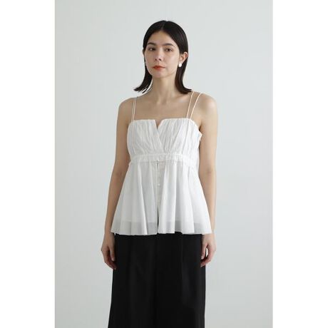 大人のサマースタイルを叶えるキャミソールブラウスコーマ糸を使用した毛羽立ちの少ないきれいな表面感に、ナチュラルワッシャー加工をした、ソフトな手触りのコットンローン素材を使用。貝釦は開閉でき、後ろ身頃とアンダーバストにはゴムを通しているので、着心地よく着用いただけます。脇はファスナー付き、肩紐の長さ調節は後ろ身頃の内側で可能。タックディテールワイドパンツ(商品番号0924230001)や、デニムパンツと合わせてカジュアルに着こなすのもお勧めです。