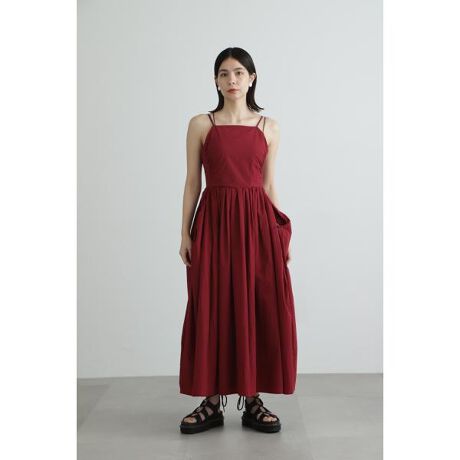 デイリーはもちろん、海や公園などのレジャーシーンや雨の日にもストレスなく着られるワンピース撥水加工されたナイロン素材を使用、スカート部分はメッシュの裏地を付けているので、暑い季節も軽やかに着ていただけます。上身頃はパネルラインにギャザーを入れ、スカート部分は立体的な切り替えとドローストリングを通したデザイン性の高さがポイントで、女性らしさの中にもカジュアルな印象をもつ1枚。キャミ型の夏ワンピなので、中はカップ付きタンクトップなどのインナーと一緒に着ていただくのがオススメです。