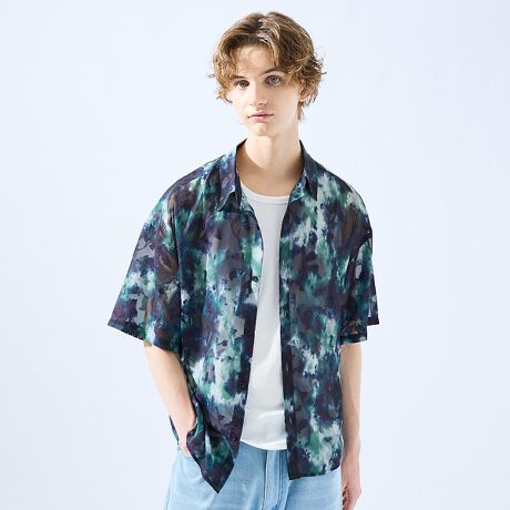 AH ABAHOUSE人気のアブストラクト柄から新作が登場。 シアージャガードにアブストラクト柄をプリントし モード感溢れる夏に最適のシャツです。