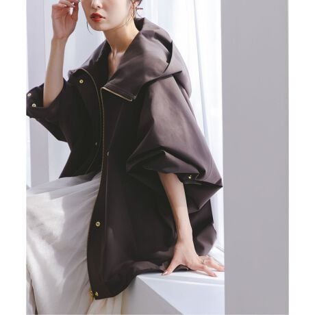 ポリエステル100%のダブルクロスの生地から生み出された、しっとり感を持ち合わせつつも適度にカジュアルさも取り入れたバランスの取れた一着。
